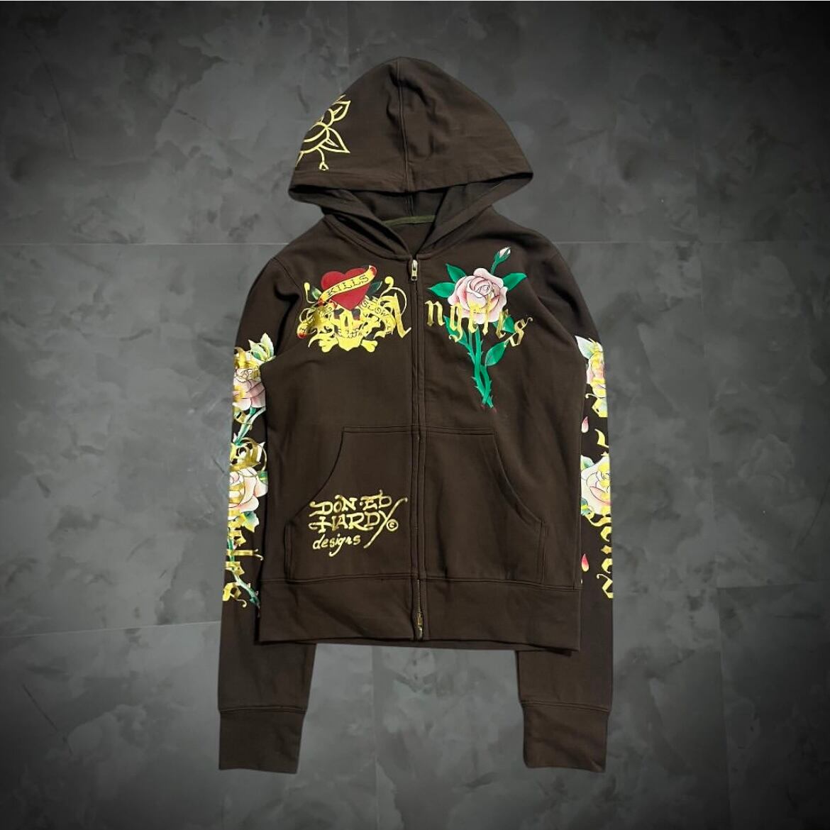 【ED Hardy】GAL rhinestone zip-up hoodie