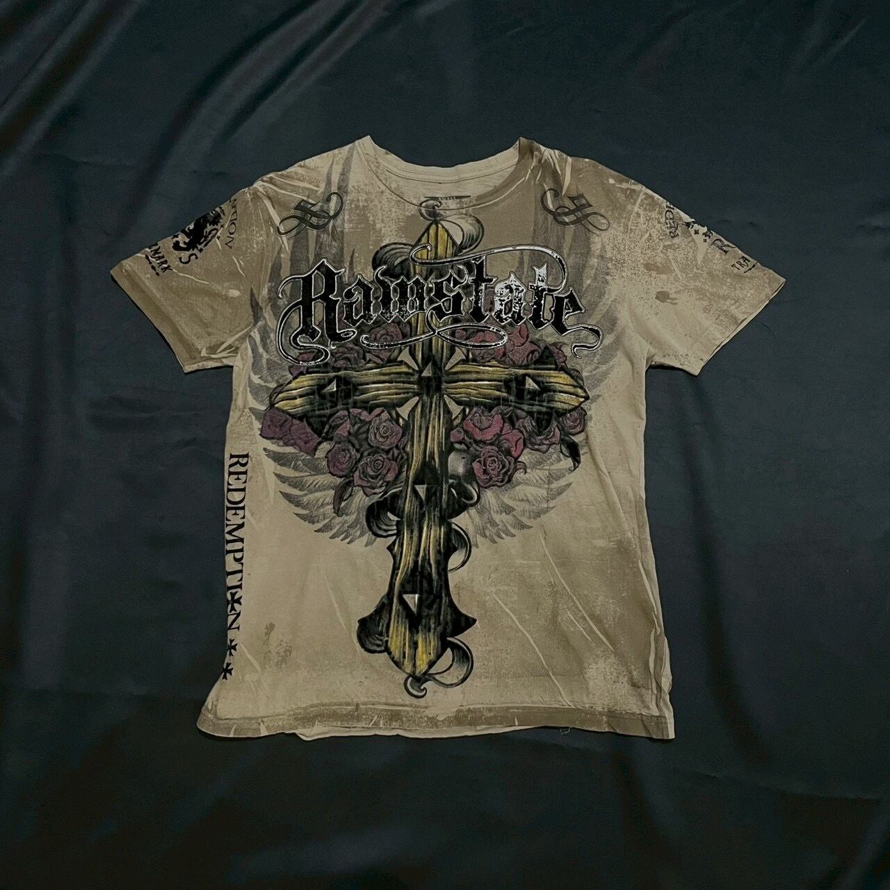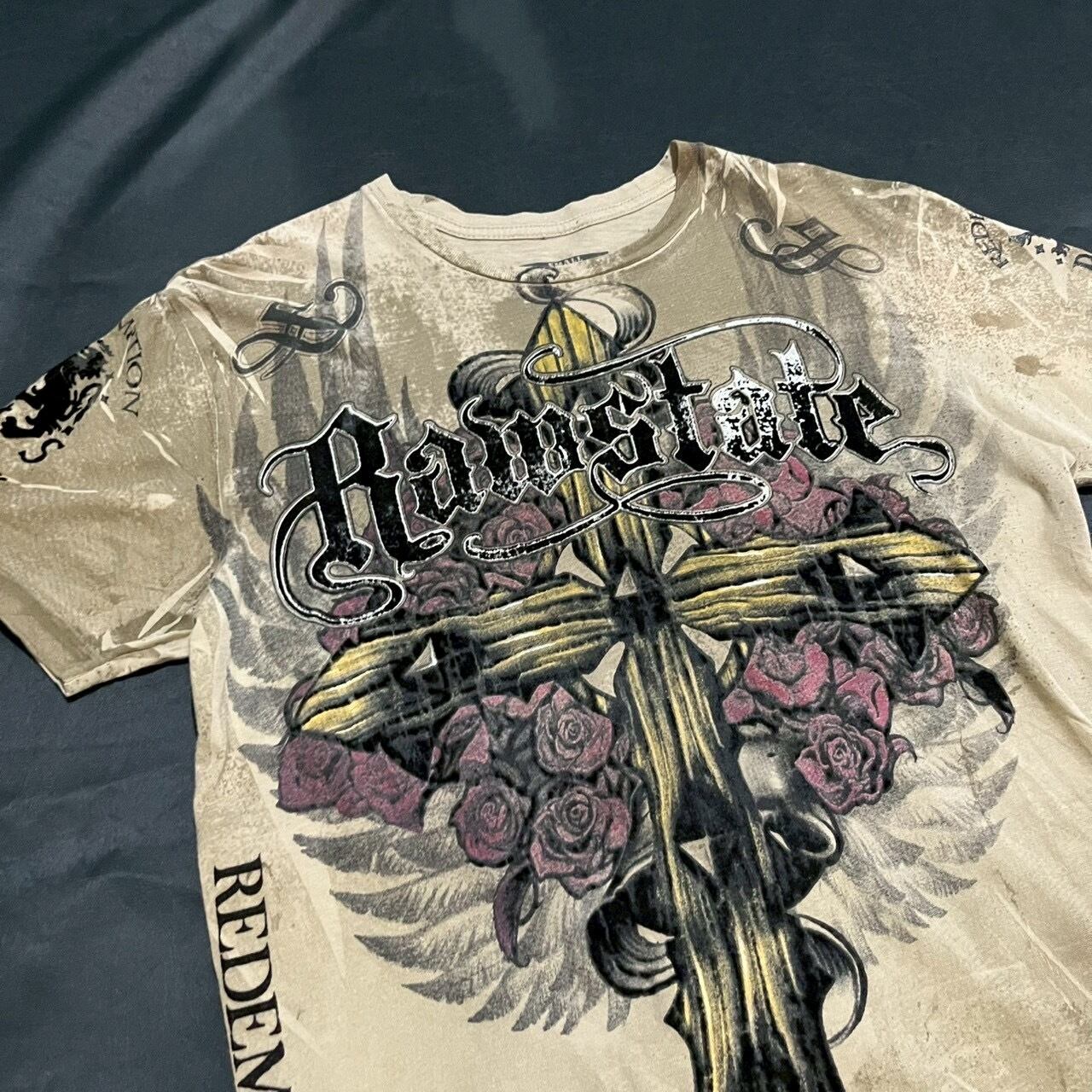 "RAW STATE"00's cross design T-shirt