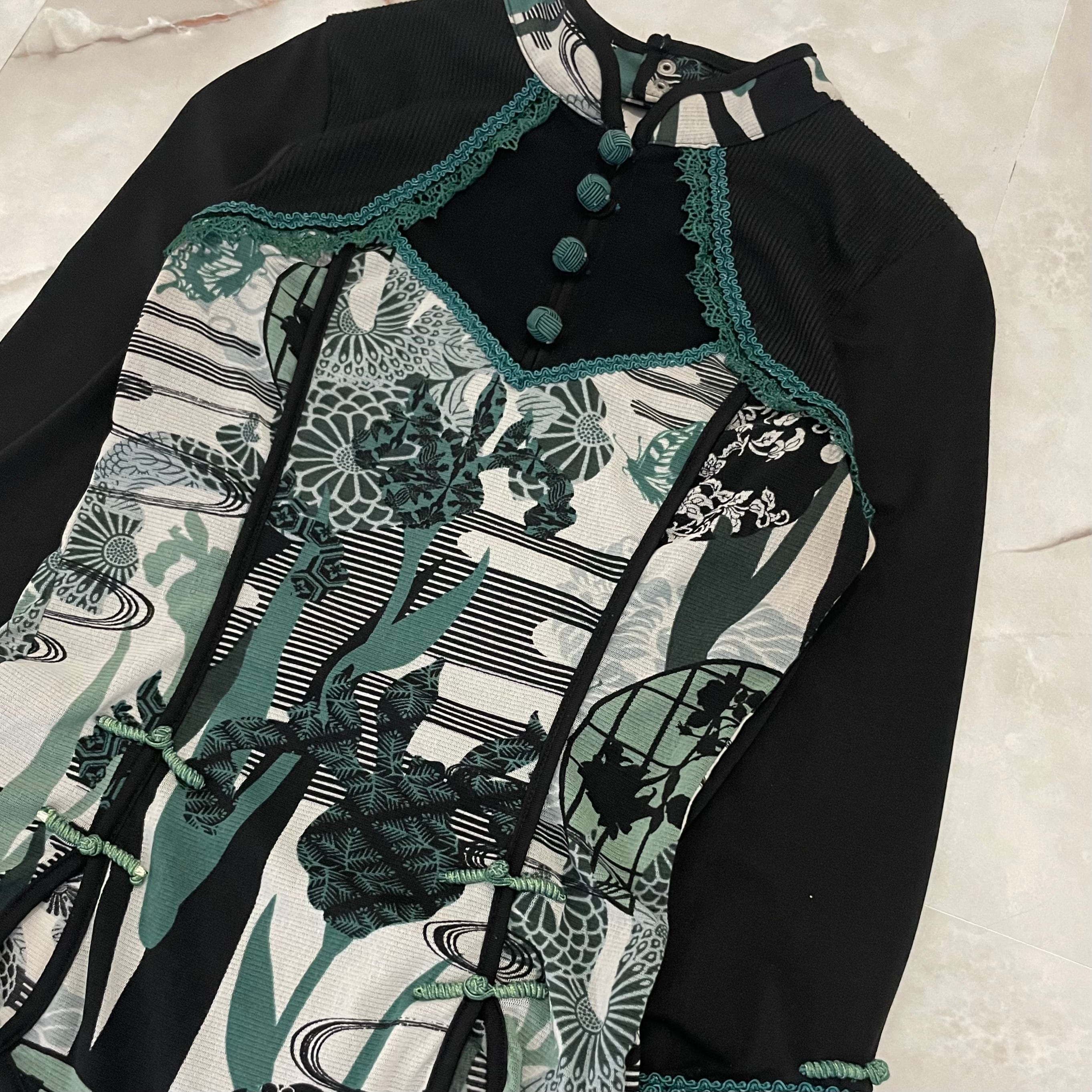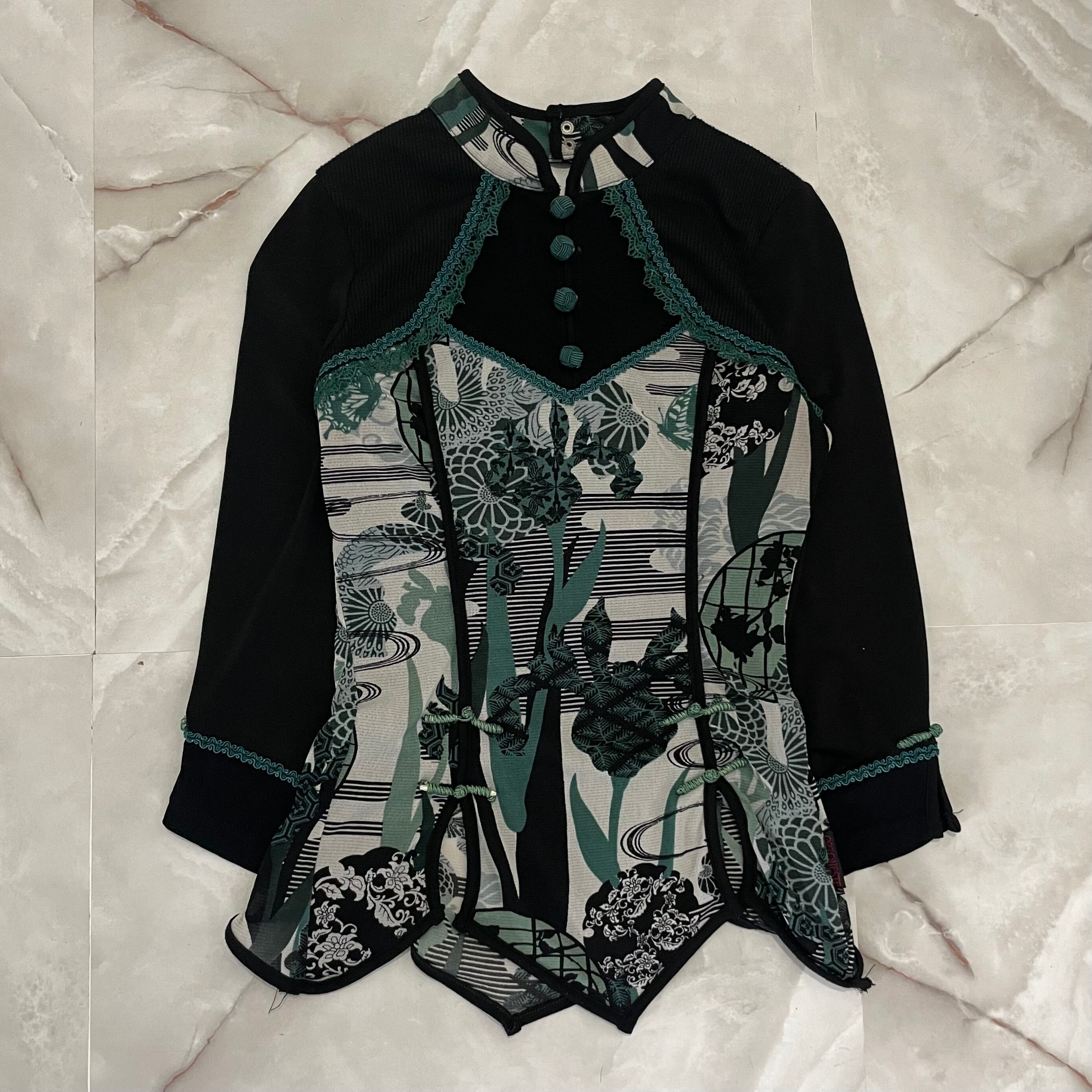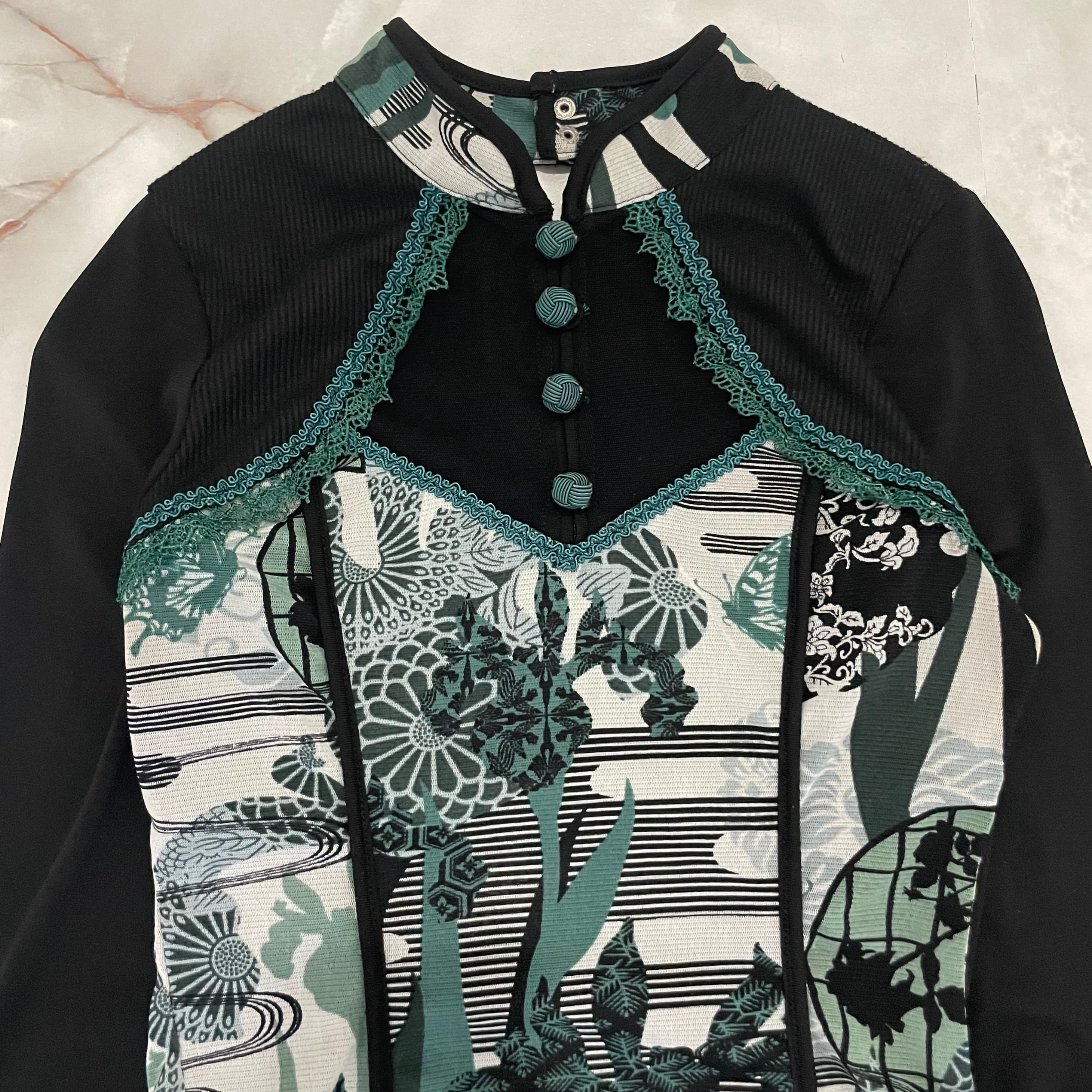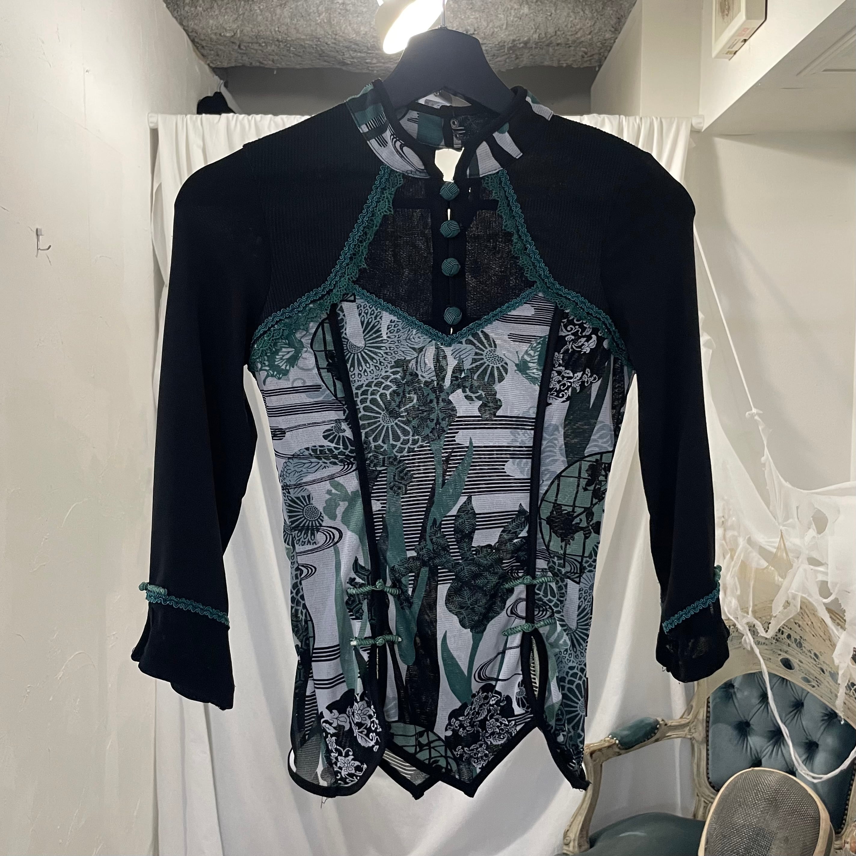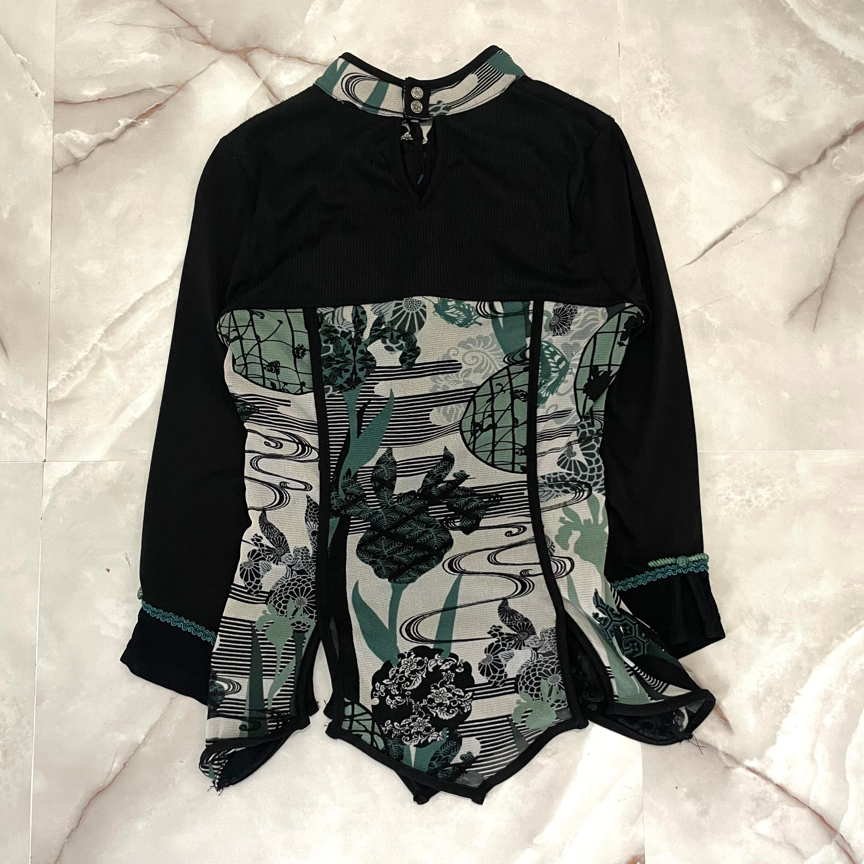 "OZZ ONESTE"sheer Japanese pattern T-shirt