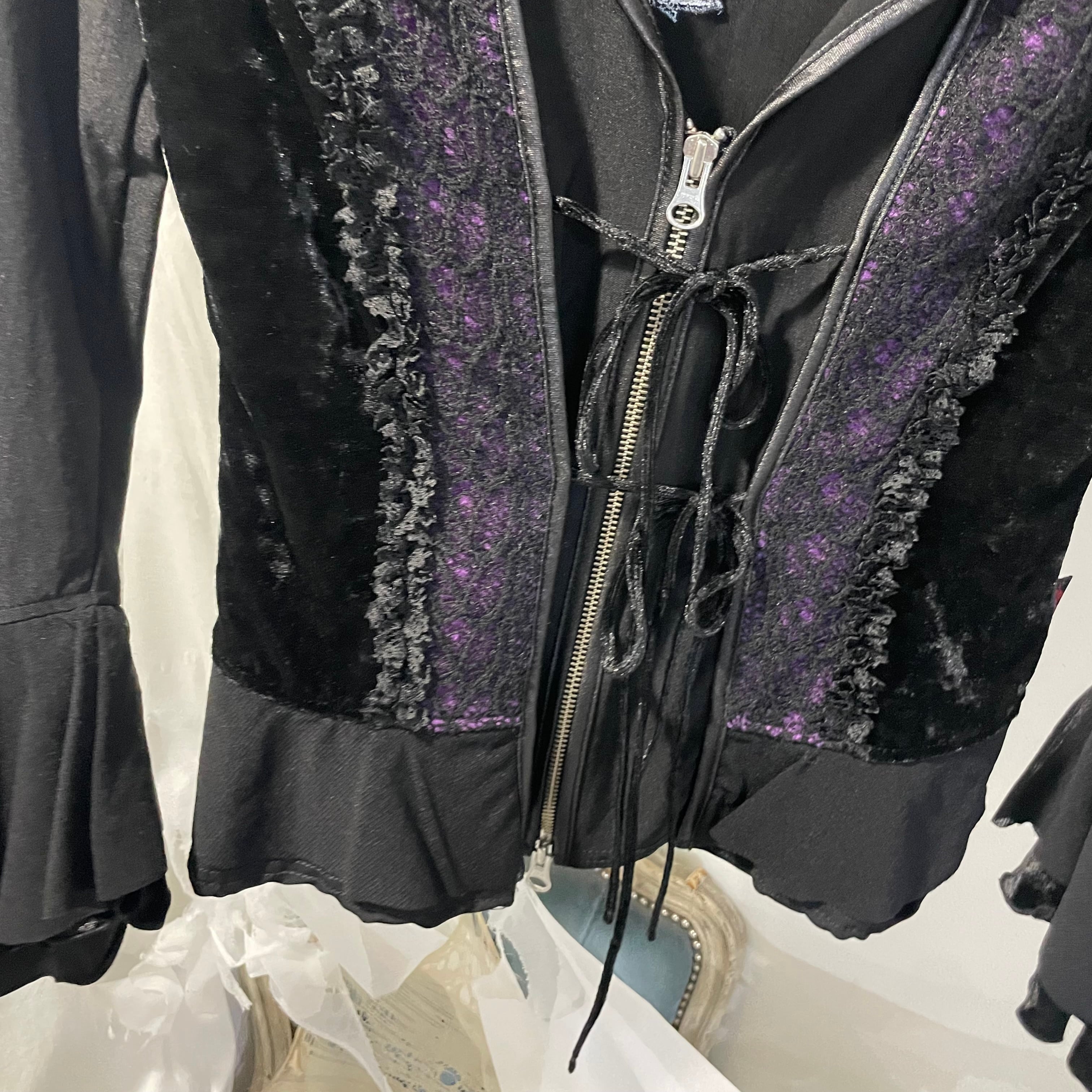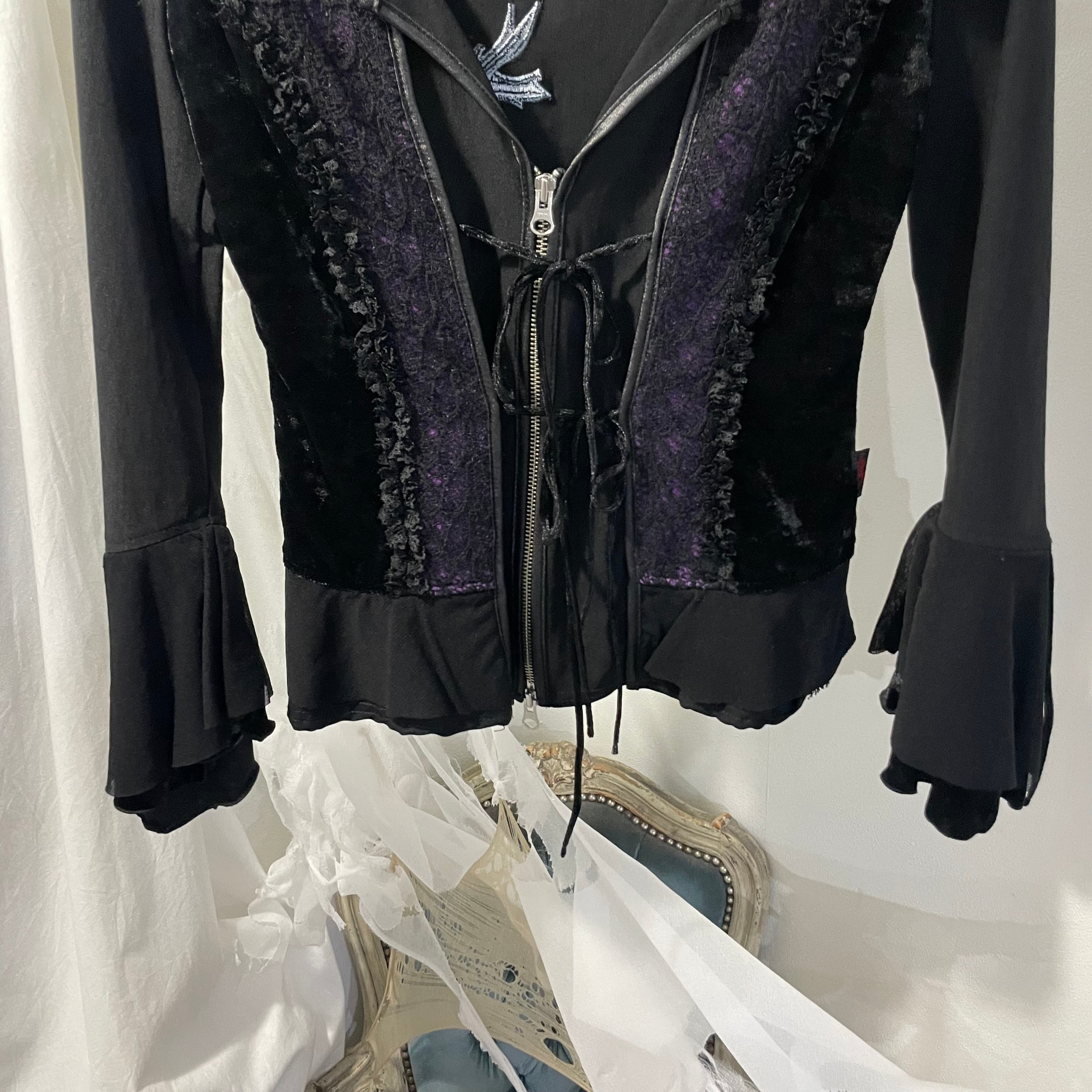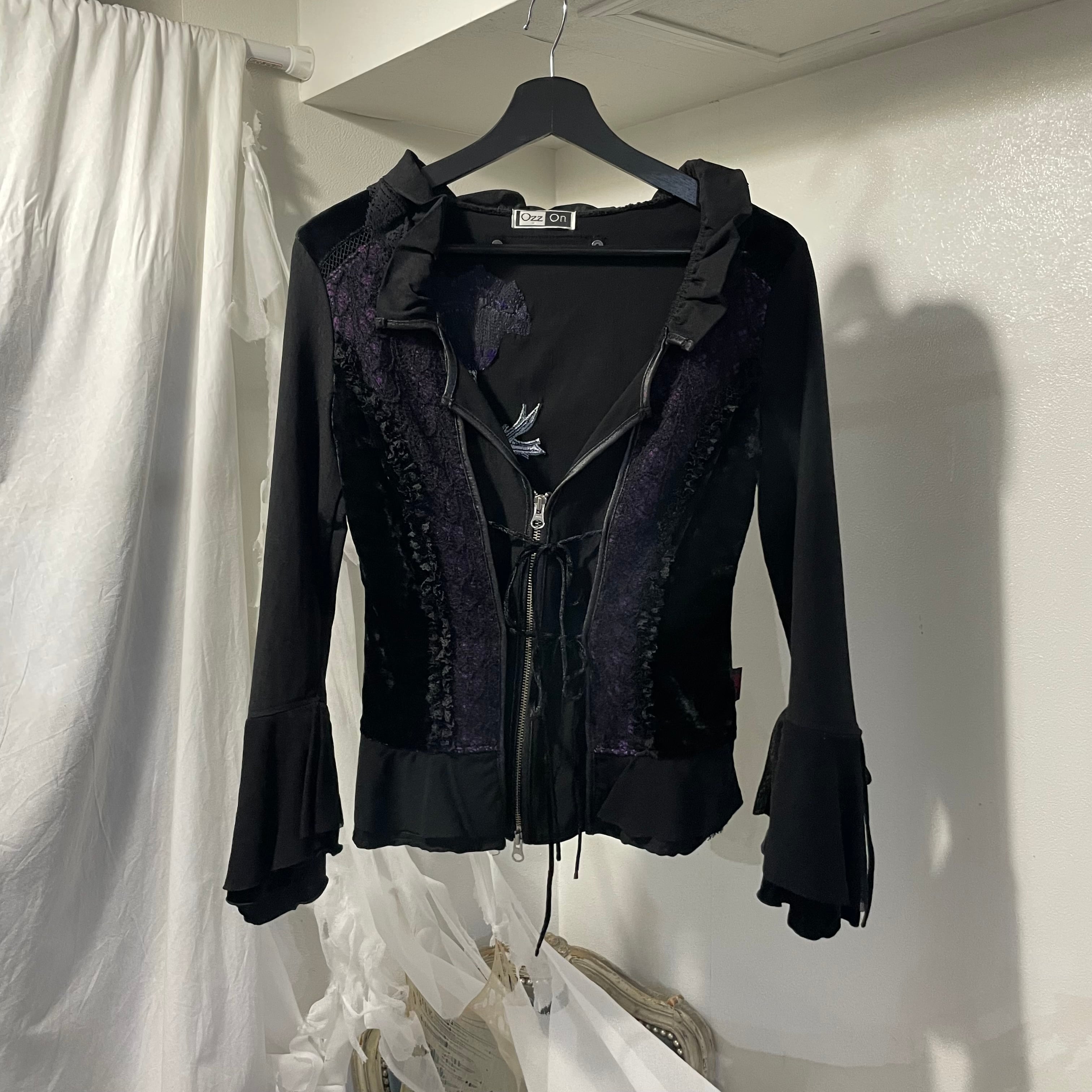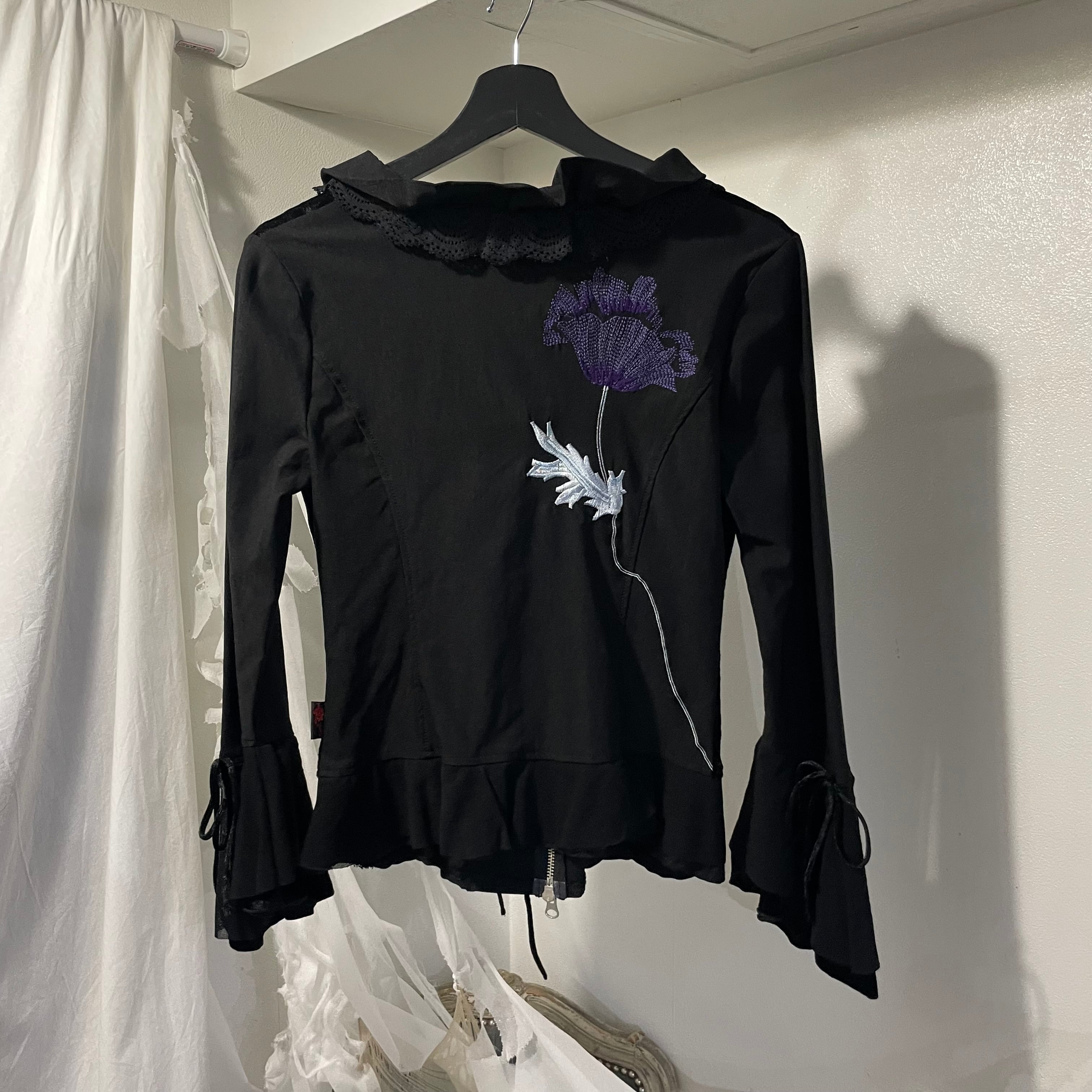 "OZZ ON" flower design double zip jacket