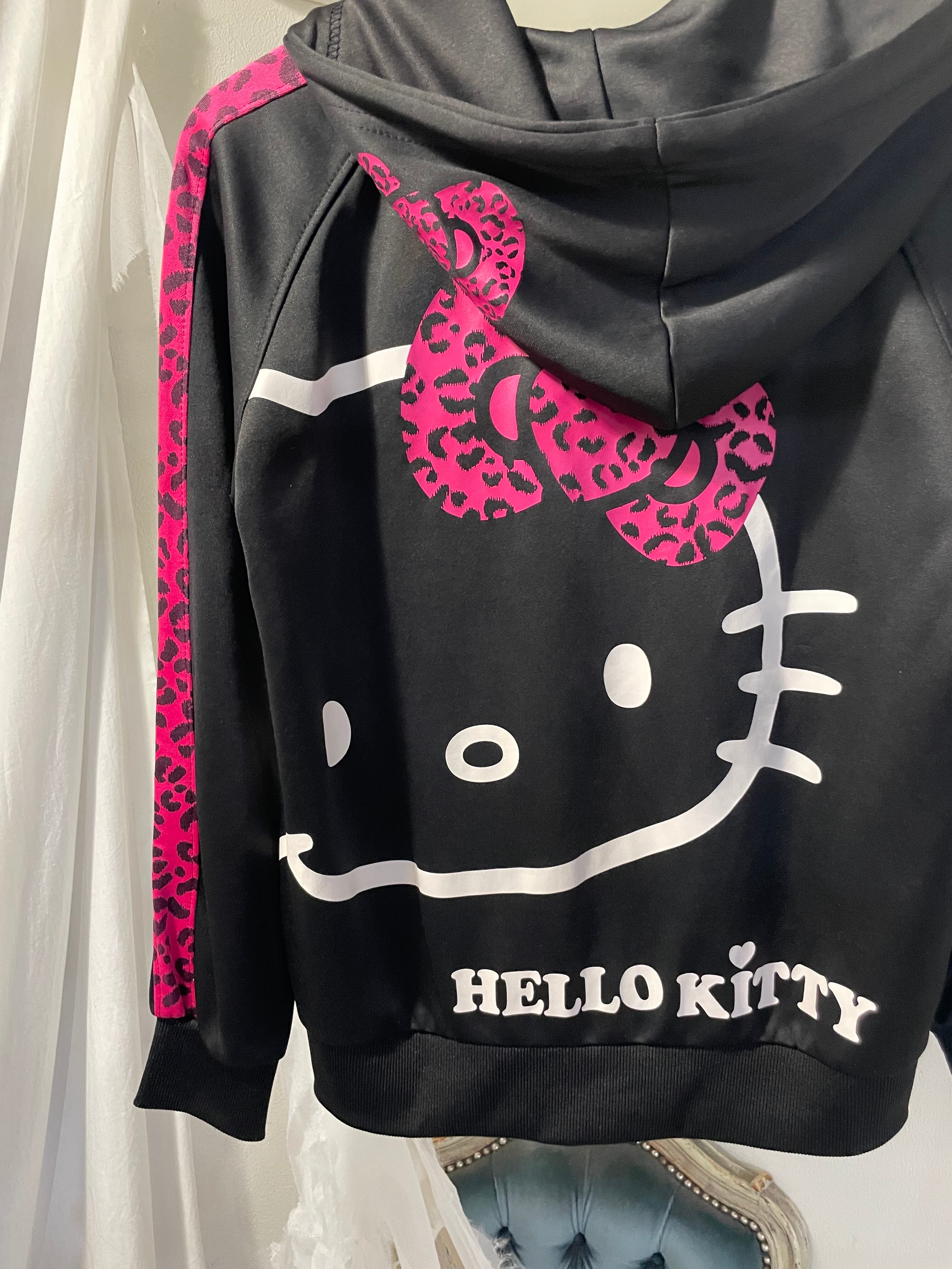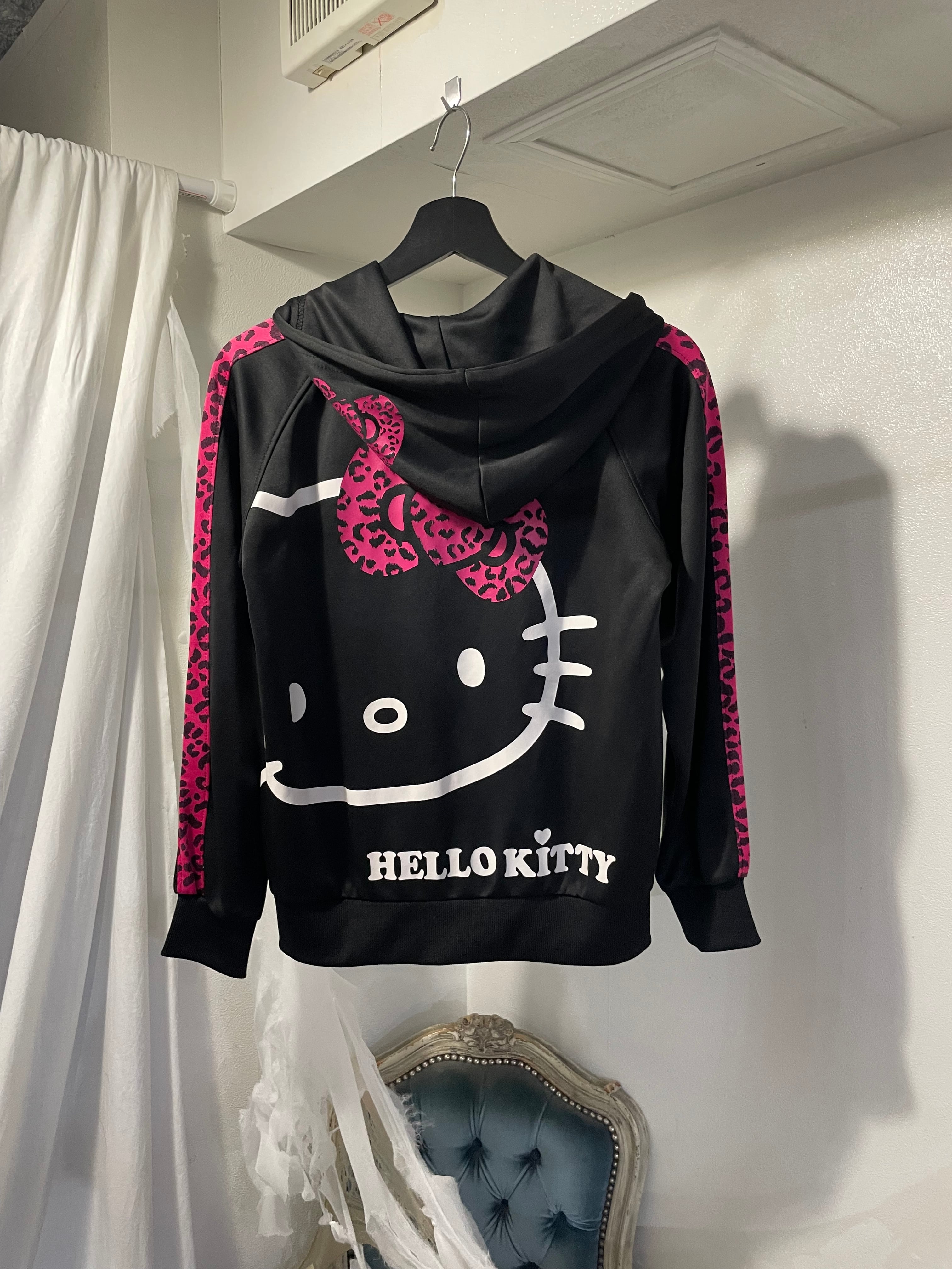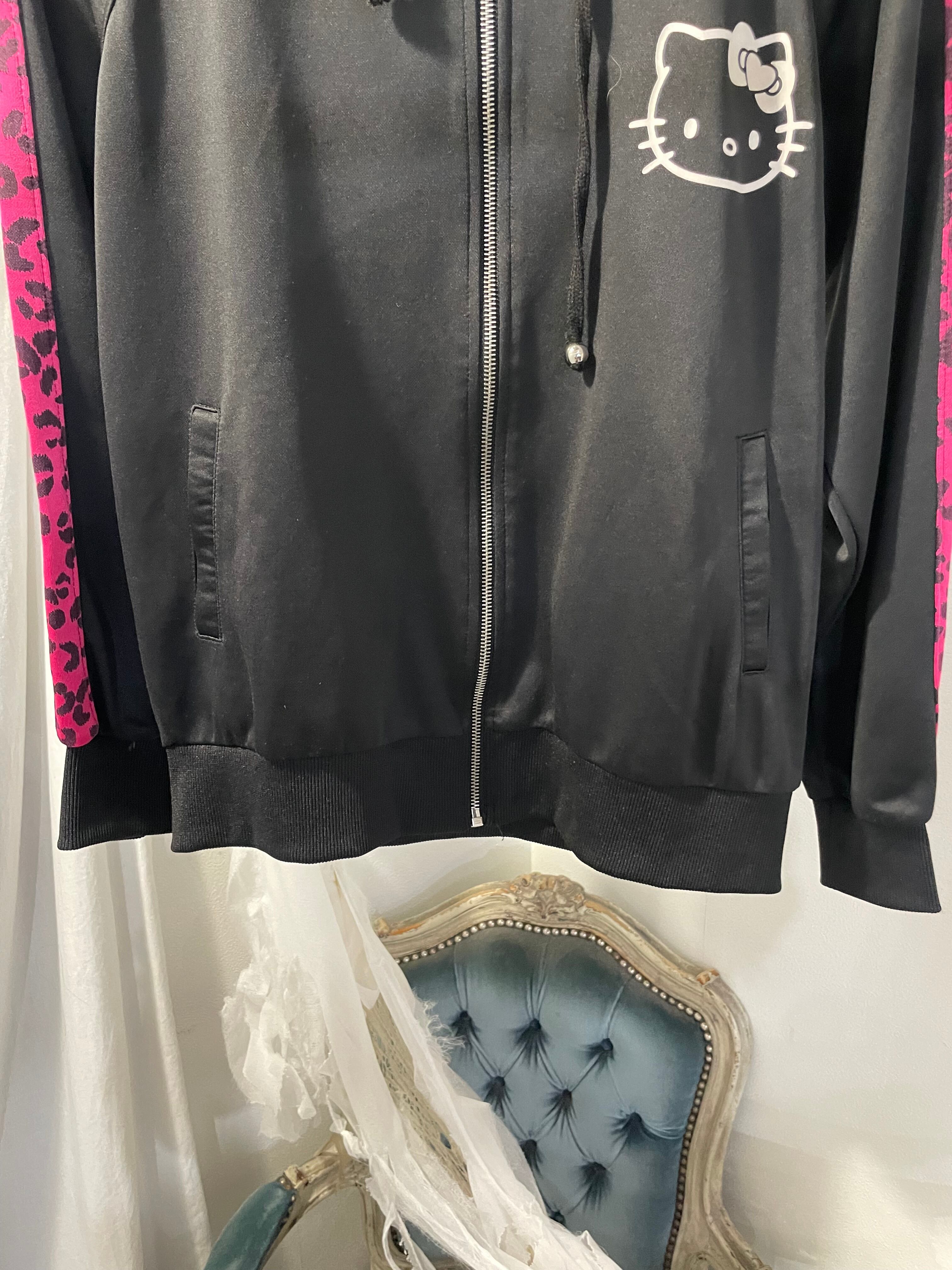 "Hello kitty"leopard pattern full zip hoodie