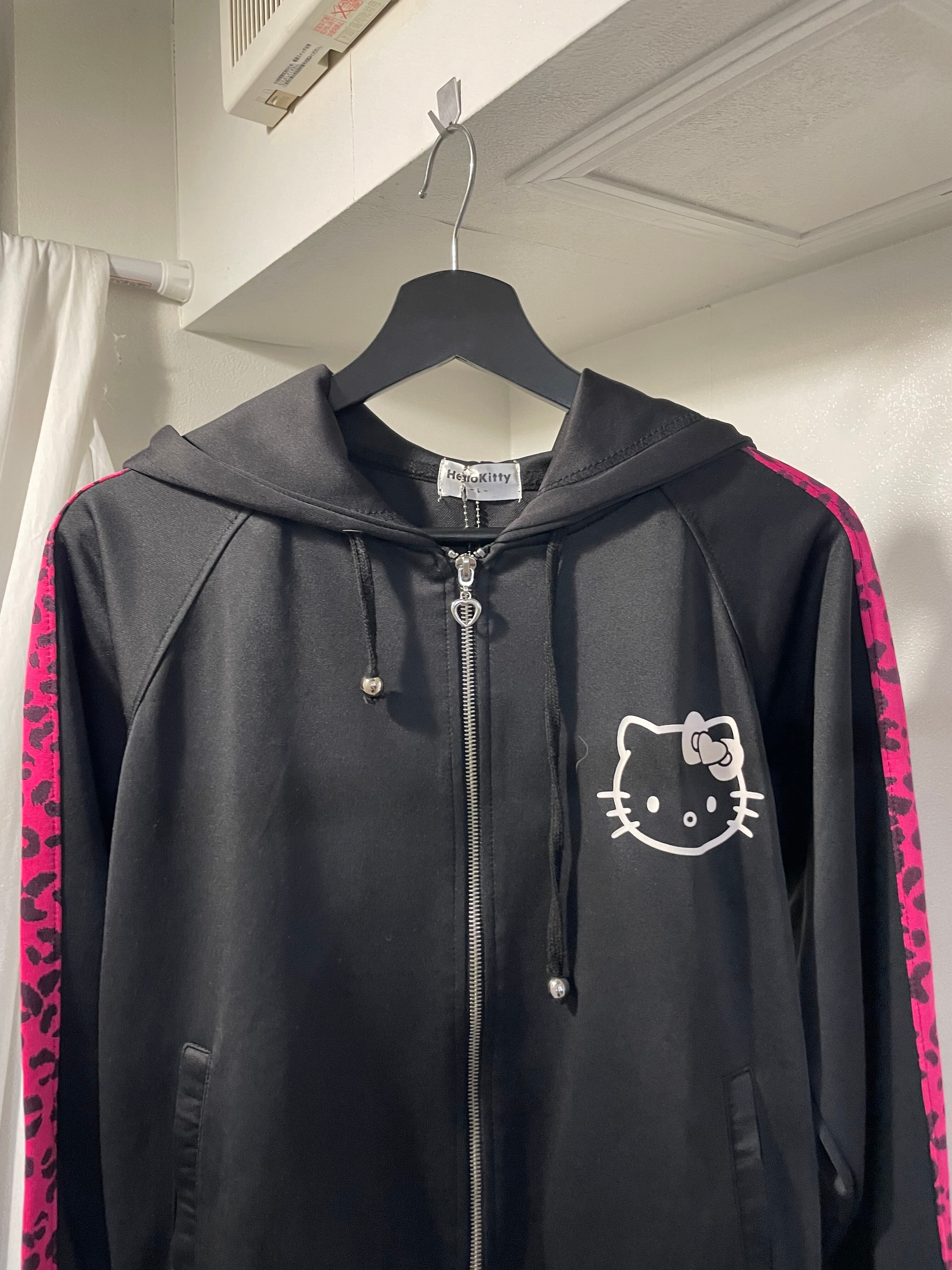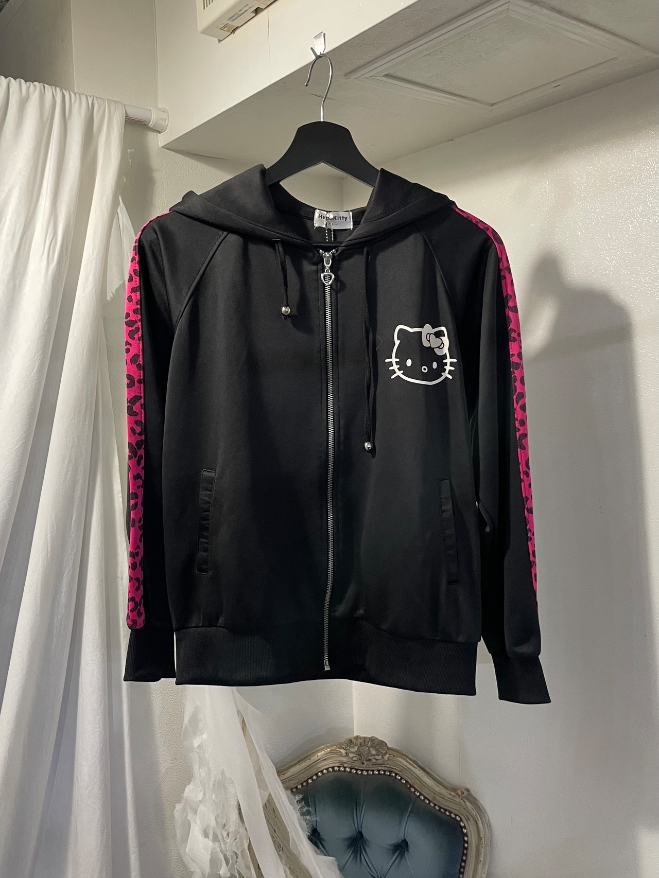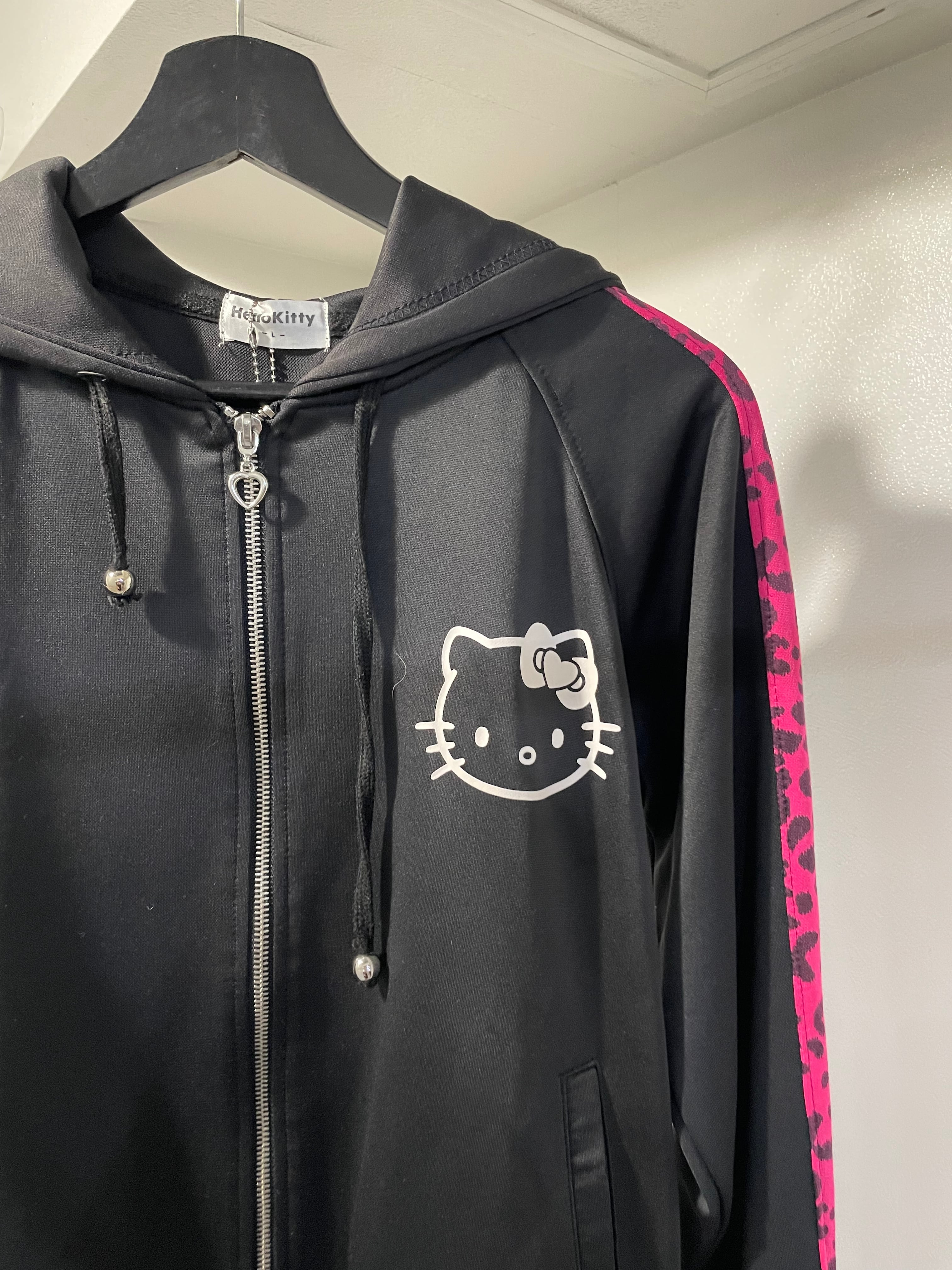 "Hello kitty"leopard pattern full zip hoodie