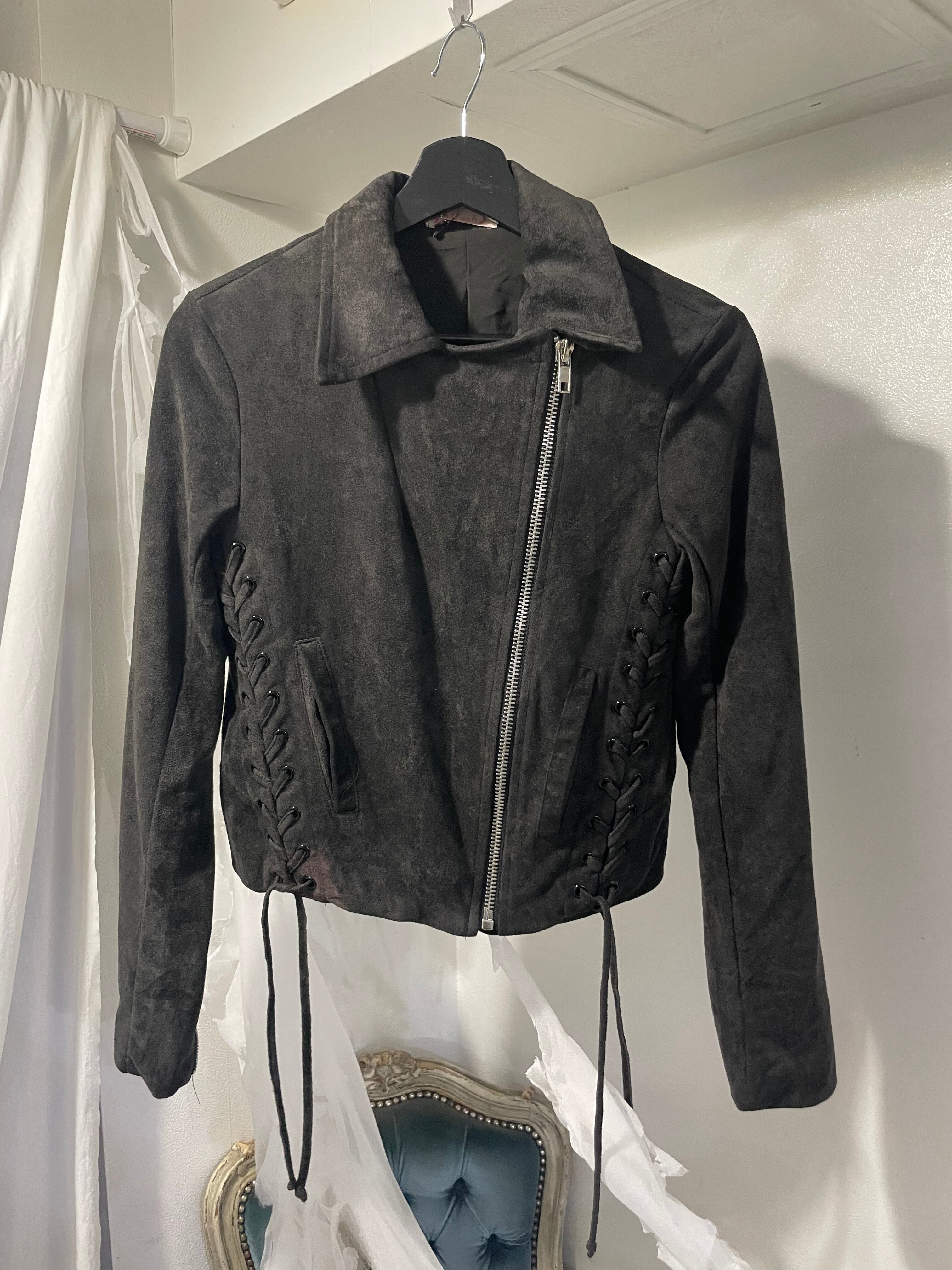 2way zip jacket used lace-up jacket