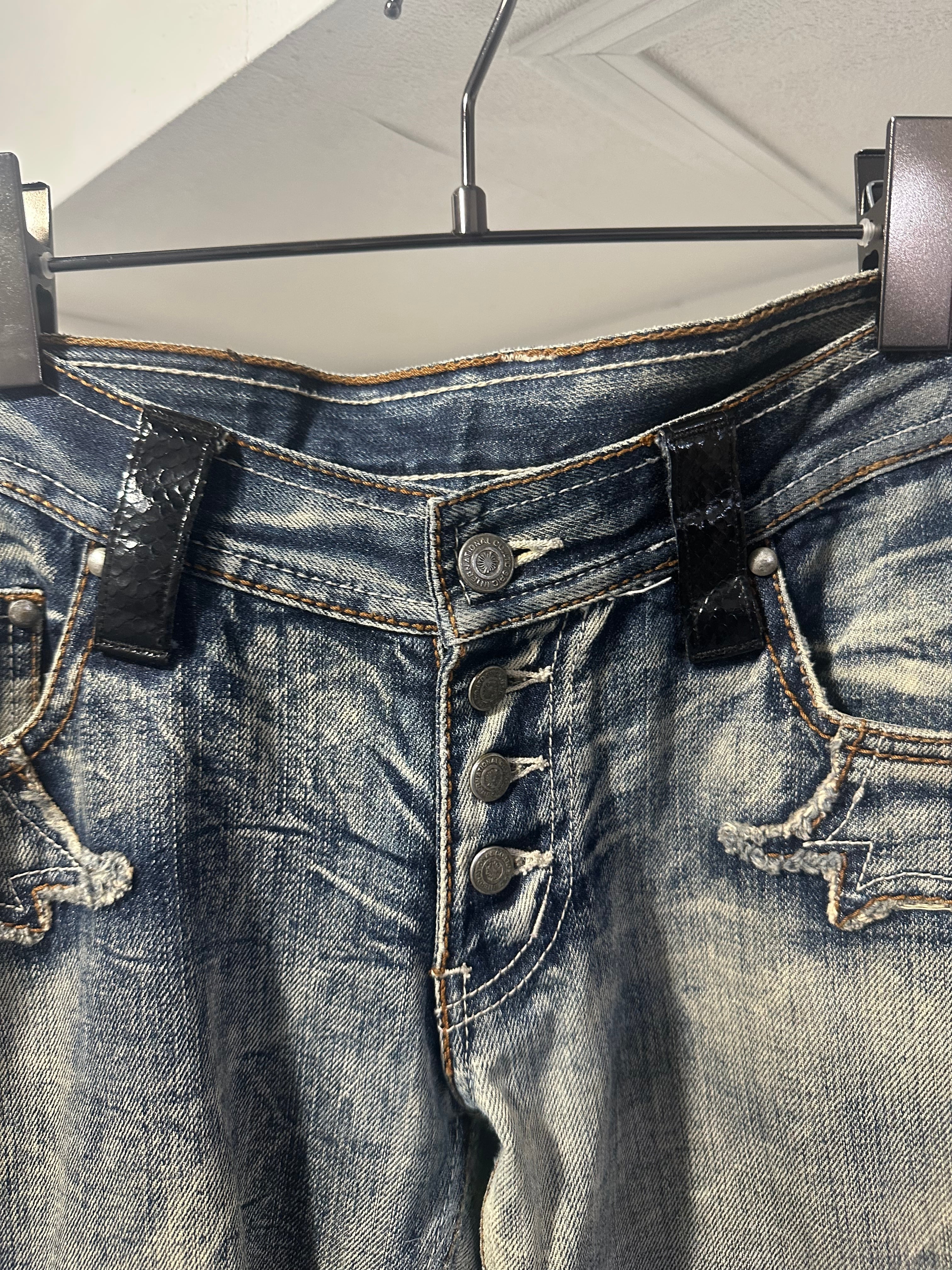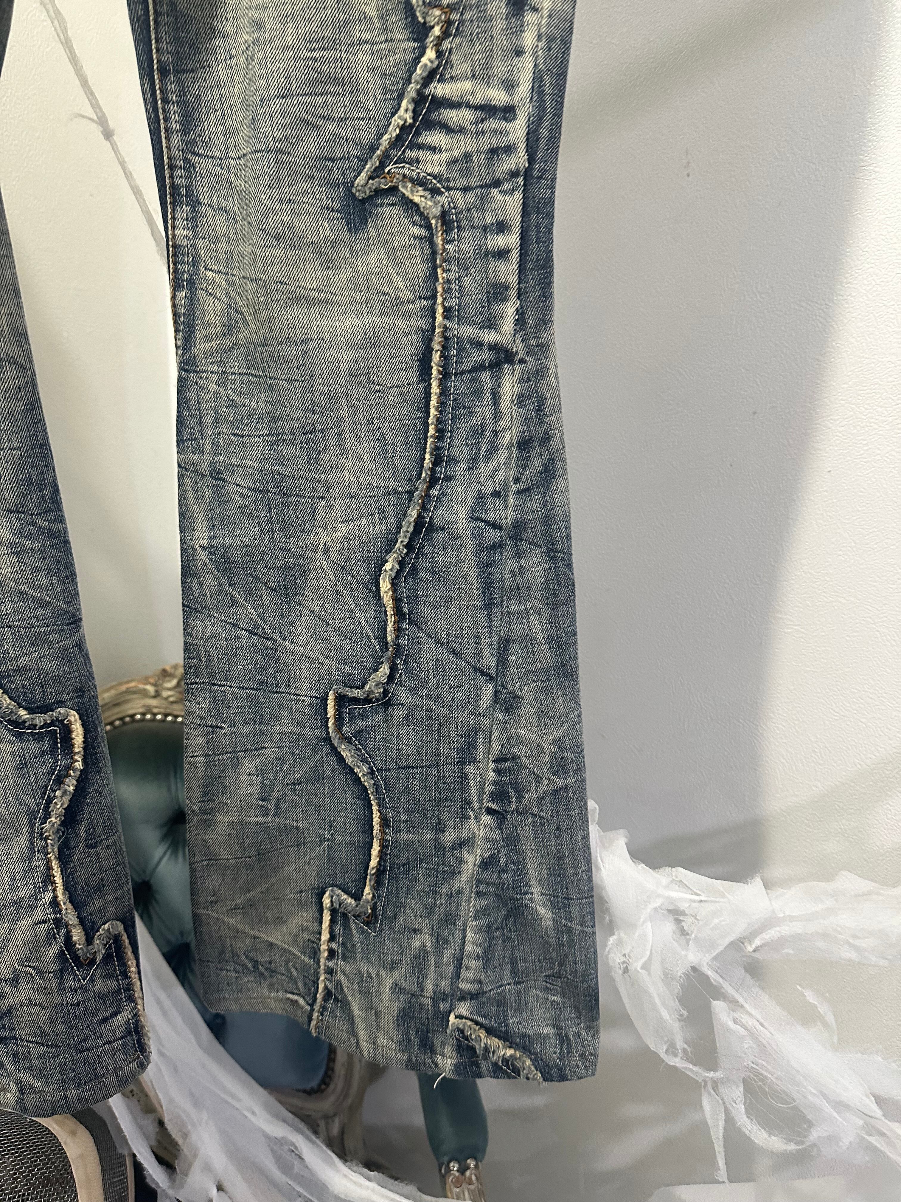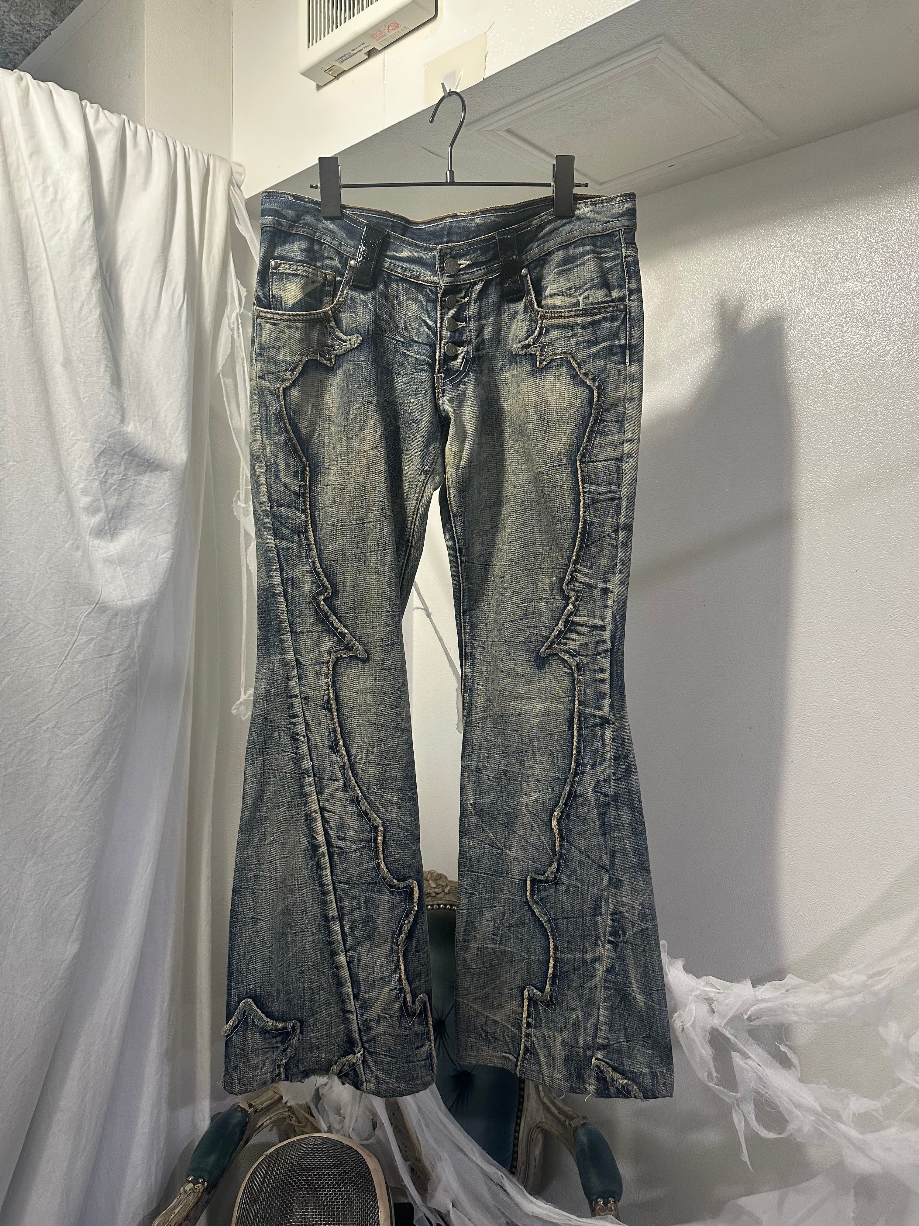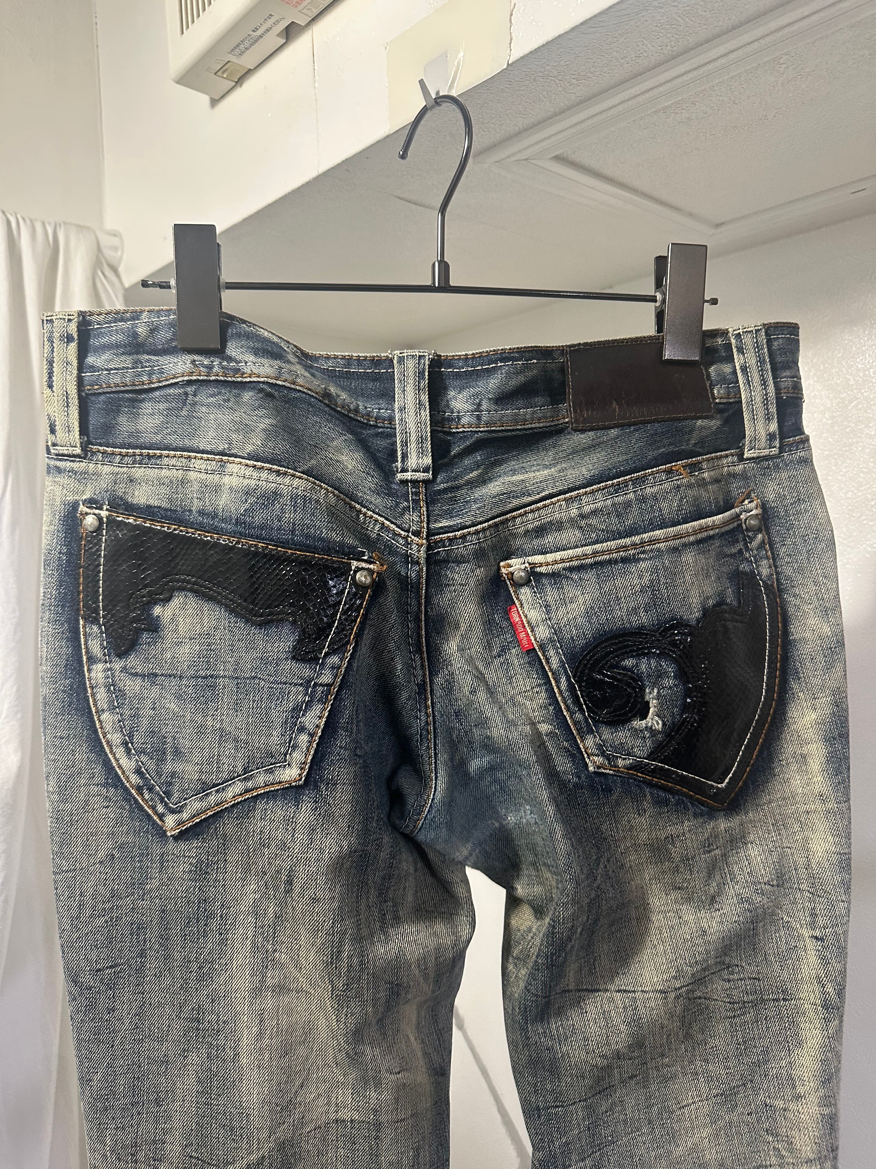 〝TORNADOMART〟leather patch flare denim