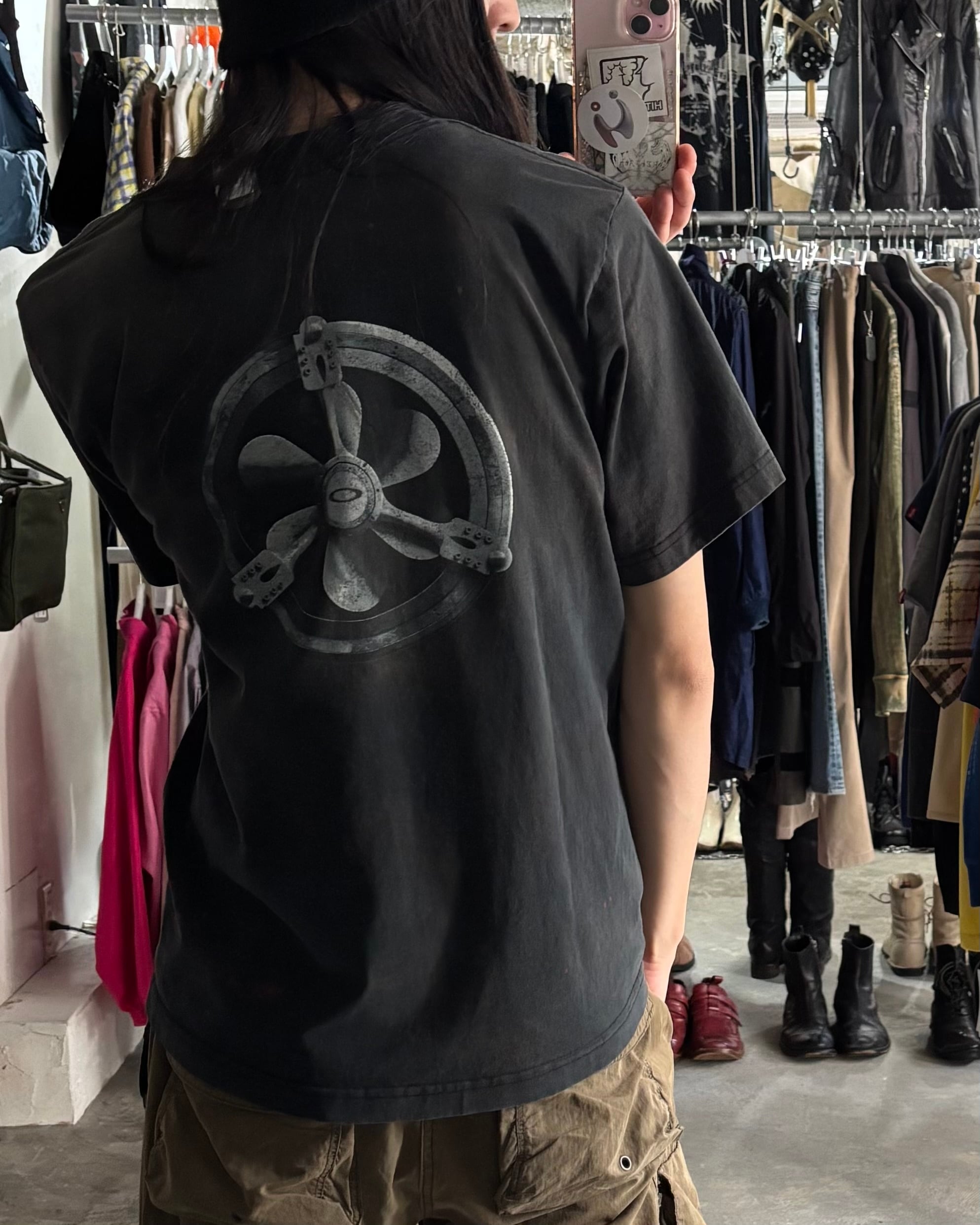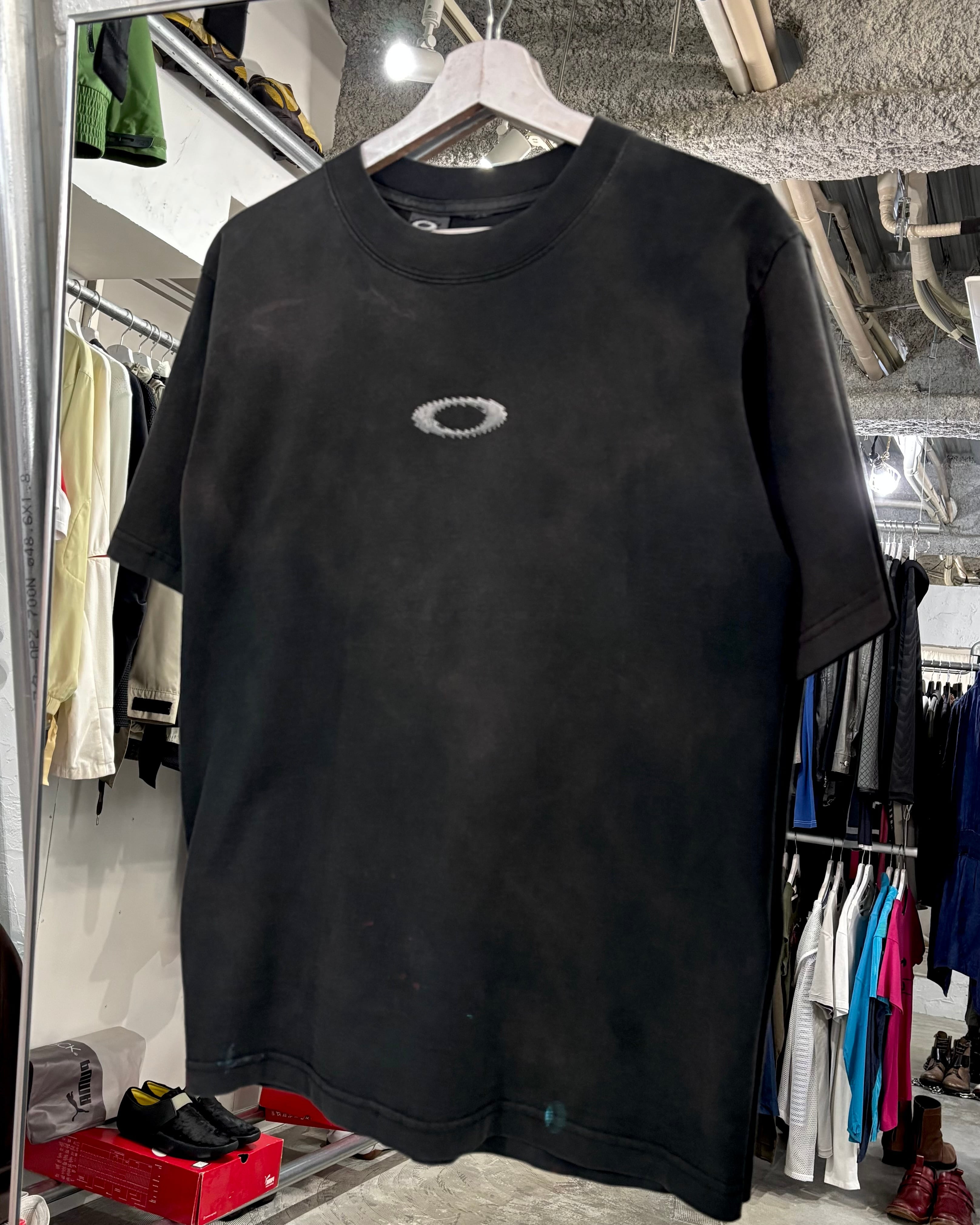 00s “OAKLEY“ Software Industrial Propeller faded Print T Shirt