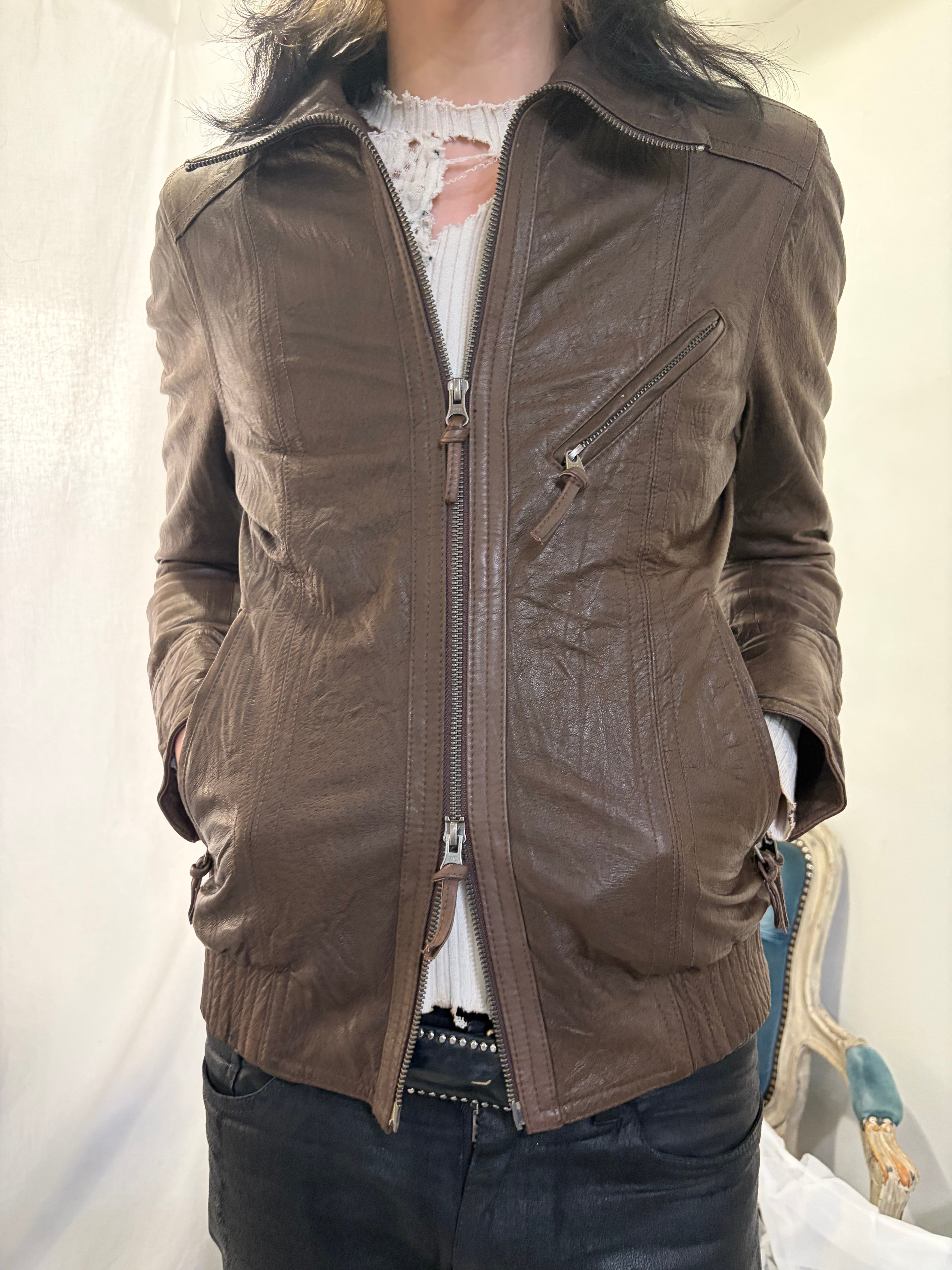 "USED" brown leather jacket